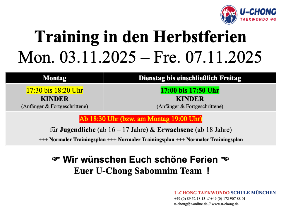 Liebe Mitglieder der U-Chong Taekwondo Schule in München,